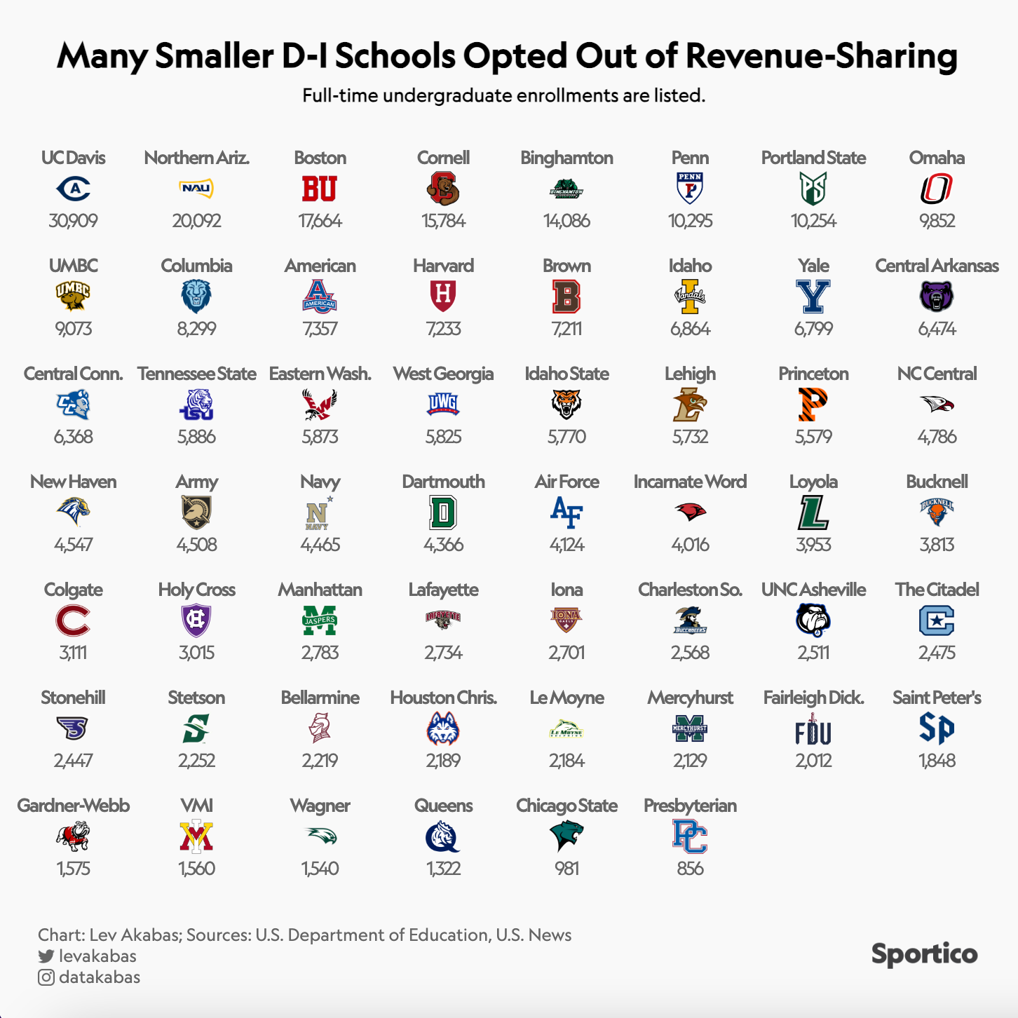 A recent analysis of NCAA Division I programs reveals that dozens of smaller schools are choosing not to participate in the revenue-sharing model established as part of the landmark House v. NCAA settlement.