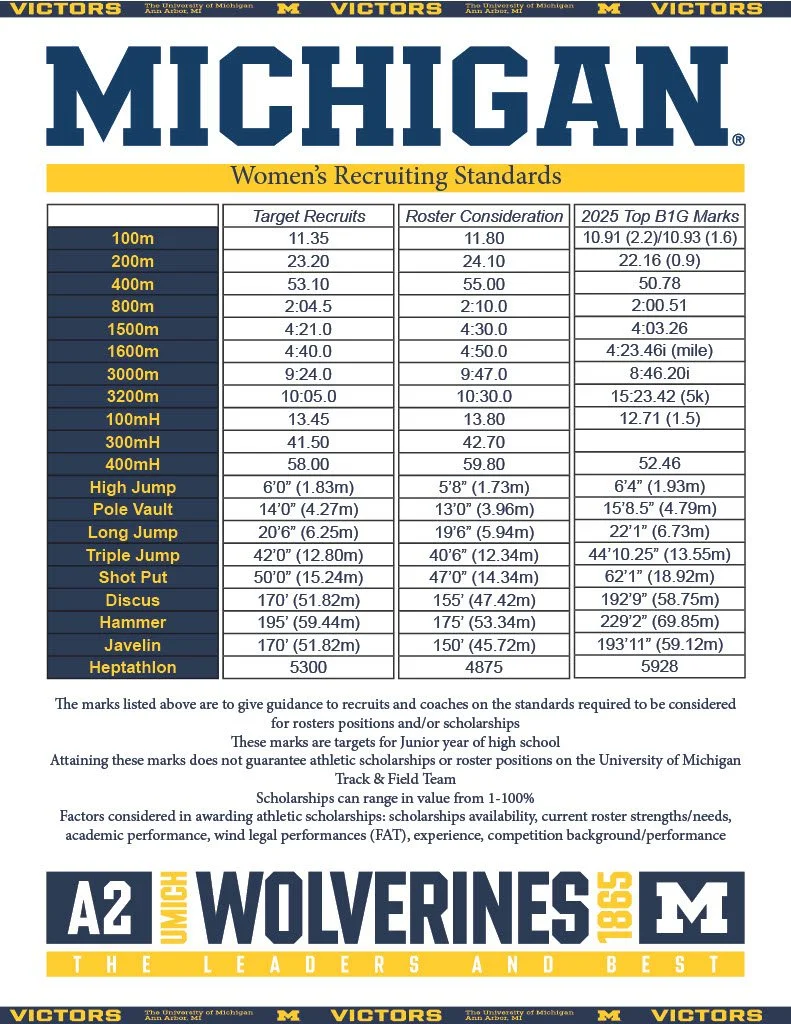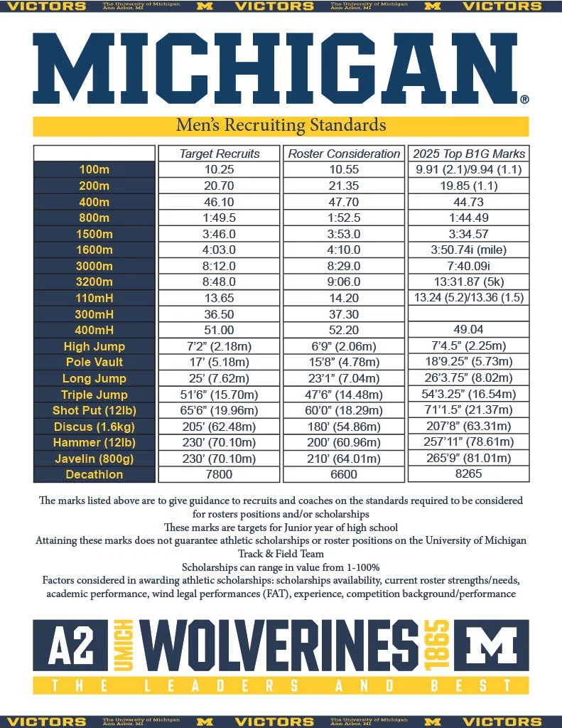 Michigan Track and Field Recruiting Standards