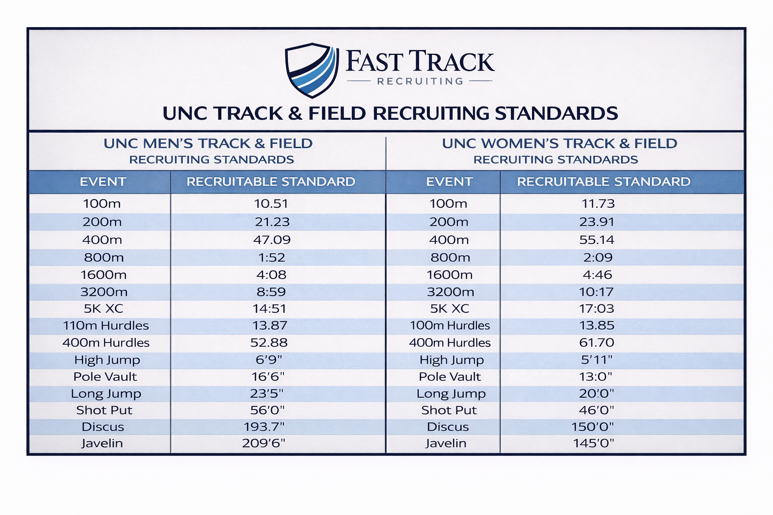 UNC does not publicly post a simple official track & field standards chart, which is why so many families struggle to know where they really stand.